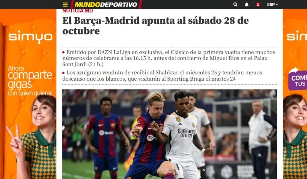 Sobre las 16:15 hora local del próximo sábado 28 de octubre apunta a disputarse un Barcelona vs. Real Madrid que también será pensando para los aficionados de ambos clubes a lo largo del planeta. El horario dispuesto permitirá la explotación comercial del choque en LATAM, así como en destinos que como Asia o Australia, manejan una zona horaria poco favorable para disfrutar del duelo. LaLiga apunta al 28O para el primer Cásico de la temporada.