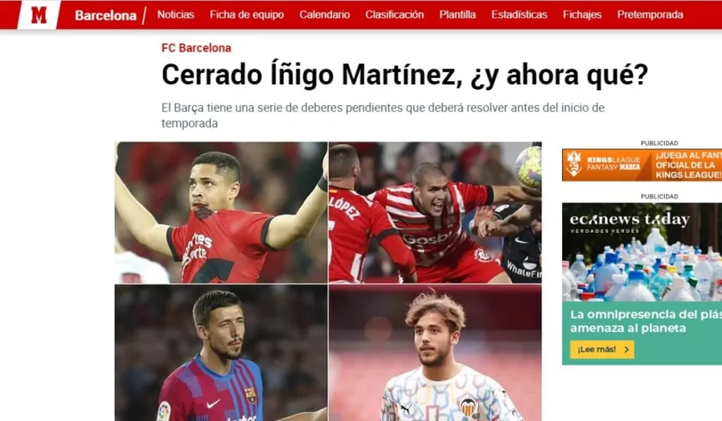 ¿Habría más fichajes? Se quiere, pero no antes de vender y liberar fichas. Eric García suena en Real Betis a modo de préstamo, pero lo que verdaderamente se busca son ingresos. Mundo Deportivo y MARCA apuntan a que se dan tratativas para buscar la marcha de nombres puntuales como: Abde, Sergiño Dest, Clement Lenglet, Nico González y Alex Collado.