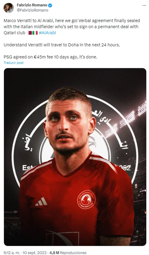 Mientras la inmensa mayoría de los jugadores que salen de Europa aterrizan en Arabia Saudita, Marco Verratti ha tomado otro camino. El volante italiano ha fichado por Al Arabi, luego de semanas de presiones por parte del equipo parisino para que abandonara el Parc des Princes.