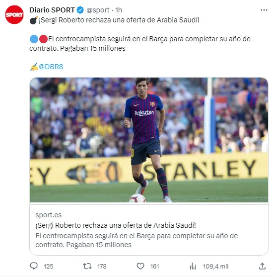 Los clubes de Arabia Saudita no se detienen en este mercado de pases y siguen lanzando ofertas por las estrellas de las principales ligas de Europa. Ahora se ha dado a conocer que Sergi Roberto ha dejado pasar una oferta multimillonaria.