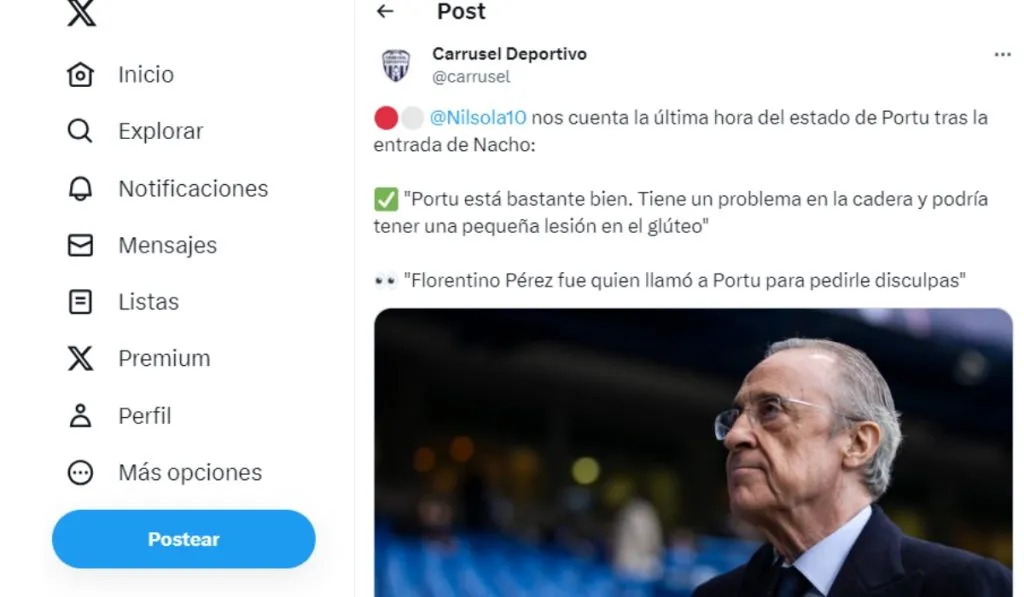 “Florentino Pérez fue quien llamó a Portu para pedirle disculpas”, información de Nil Solá en Cadena SER sobre lo ocurrido horas después de la acción. El presidente del Real Madrid, presente en el duelo y en el palco de Montilivi, llamó a un Portu que también agradeció el apoyo recibido en sus redes sociales. De momento, Nacho solo se pierde el próximo duelo de LaLiga.