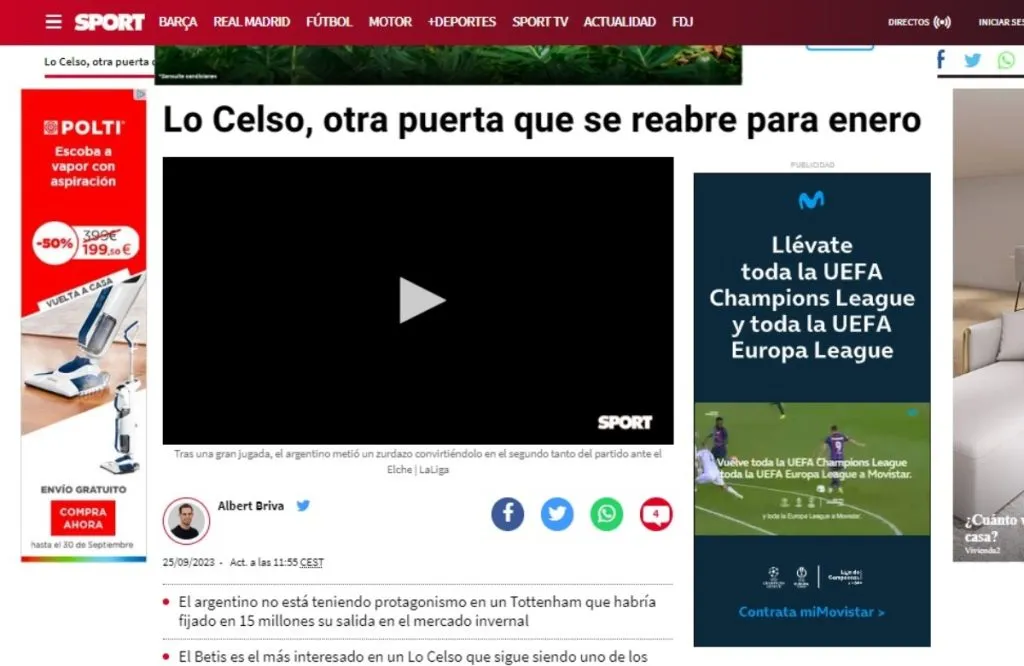 “El argentino no está teniendo protagonismo en un Tottenham que habría fijado en 15 millones su salida en el mercado invernal El Betis es el más interesado en un Lo Celso que sigue siendo uno de los grandes deseos de Xavi Hernández”, fue la información de medios que como Sport, abrían la puerta a un paso en enero rumbo a Montjuic. ¿De verdad es así?.