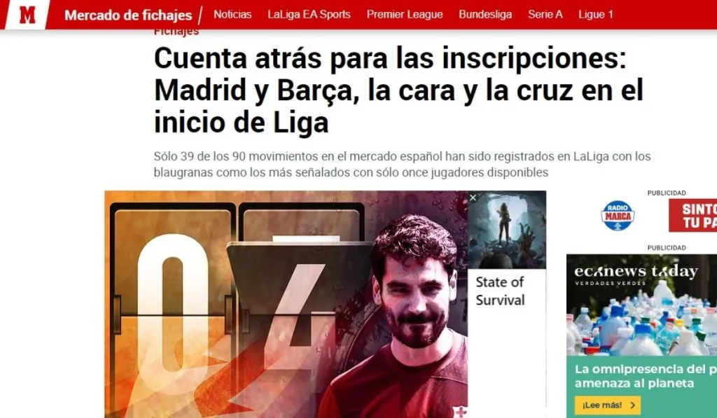 Barcelona es el más perjudicado con hasta apenas 11 jugadores de campo inscritos para el duelo con Getafe que abre el cuso. Real Madrid ya tiene todas sus fichas con permiso para jugar, Villarreal es de los más ordenados en este sentido y no debería sorprendernos el ver a más de un fichaje de élite de la primera división española pasar la jornada 1 en las gradas de sus nuevos feudos.