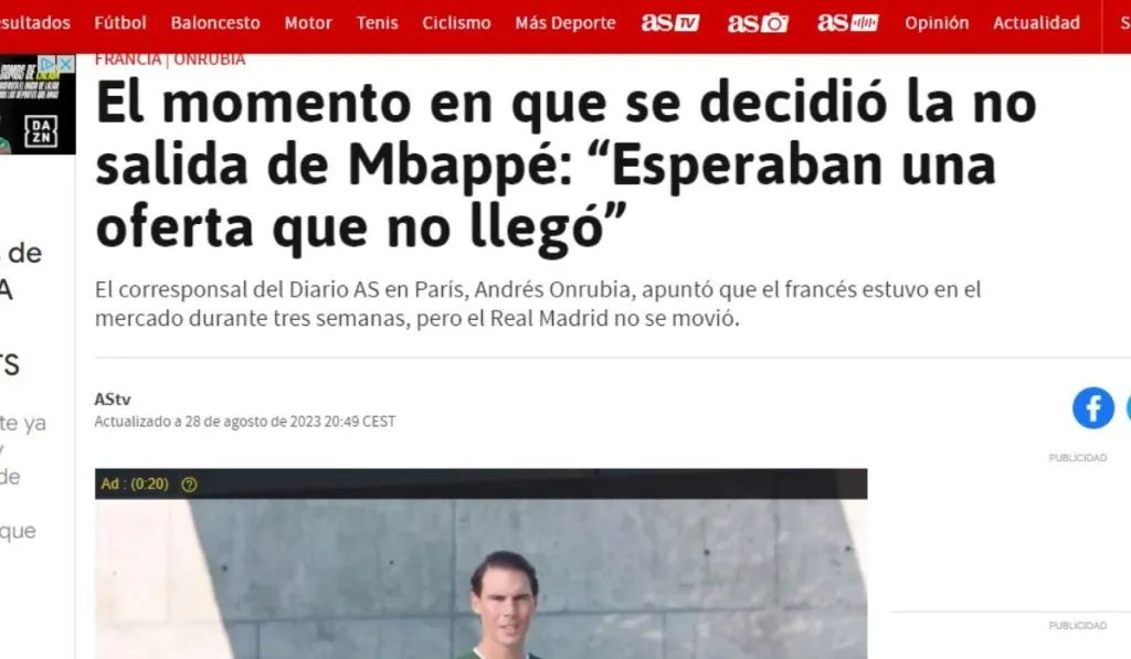 Diario AS asume que la ausencia de ofertas por parte del Real Madrid en la oficina del PSG supone el final de una novela donde Mbappé seguirá en la Ligue 1 hasta el 2024. No se espera por ofertas del conjunto Merengue en el Parque de Los Príncipes, más si que el jugador abandone Francia para unirse al club de la capital española para la próxima temporada. El discurso blanco se mantiene.