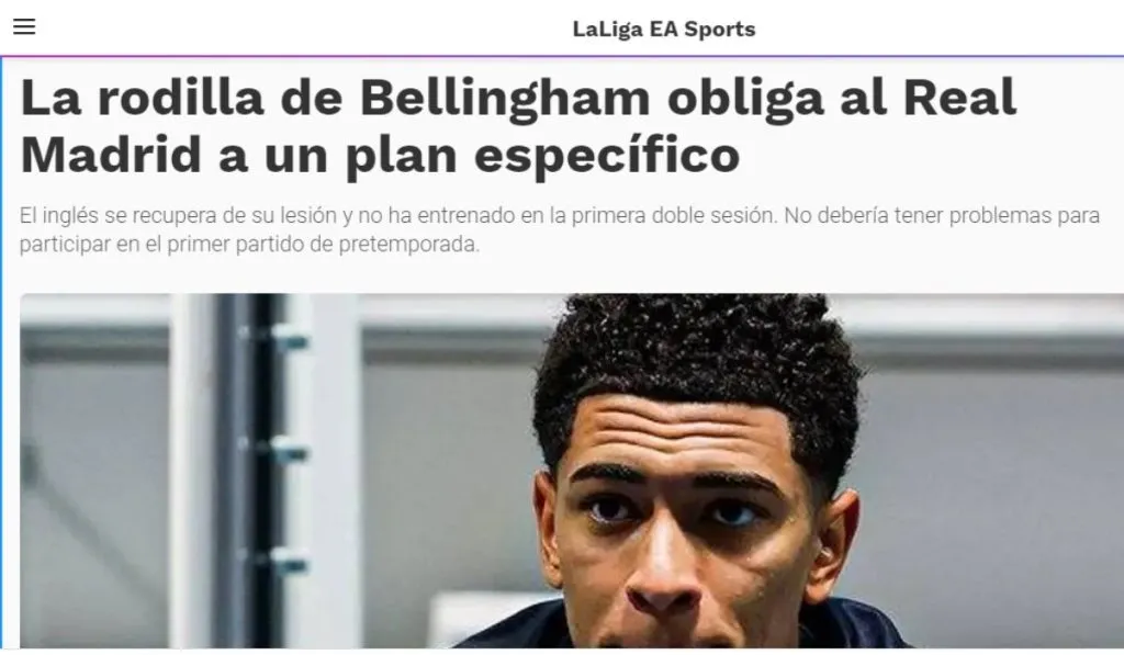 Hasta que llegue o no Kylian Mbappé hay un nombre de moda en Real Madrid y no es otro que Jude Bellingham. El crack de 20 años empieza una nueva etapa en LaLiga tras triunfar por la Bundesliga en una campaña donde pagó el precio a los esfuerzos realizados en Borussia Dortmund. La rodilla del inglés, tema aparte y con muchas informaciones de por medio. ¿Qué ocurre?