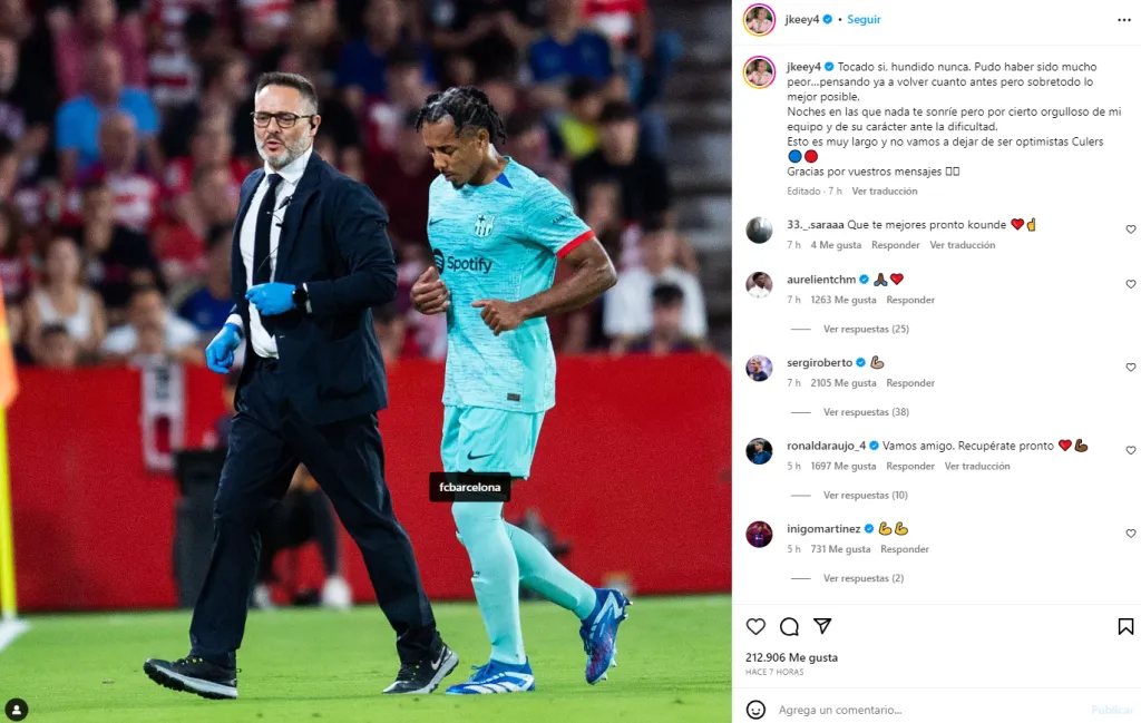 En su cuenta de Instagram, se encargó de dejarle un mensaje a los fanáticos del Barça: “Tocado si, hundido nunca. Pudo haber sido mucho peor… Pensando ya en volver cuanto antes pero sobretodo lo mejor posible. Noches en las que nada te sonríe pero por cierto orgulloso de mi equipo y de su carácter ante la dificultad. Esto es muy largo y no vamos a dejar de ser optimistas Culers. Gracias por vuestros mensajes”.