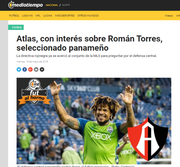 Aunque Román Torres tiene contrato con el SeattleSoundershasta 2019, el Atlas podría hacer una oferta después de las inminentes ventas de Luis Reyes y MiltonCaraglio, quienes pasarán a América y Cruz Azul respectivamente.