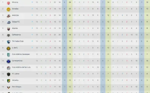 El Ascenso MX está en su recta final, y luego de 13 jornadas disputadas Mineros de Zacatecas sigue a la cabeza del certamen, le escoltan los Dorados de Sinaloa y los Alebrijes de Oaxaca.