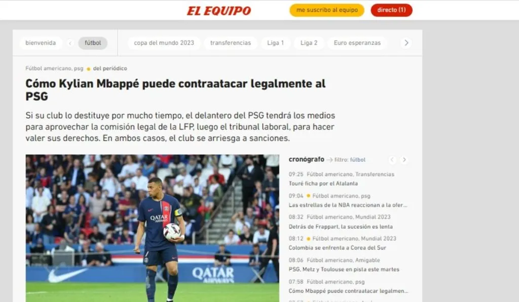 A todo esto se le suma que en caso de pasar suficientes jornadas entrenándose en solitario o bajo el grupo de los ‘indeseables’, Mbappé tendrá los medios para aprovechar la comisión legal de la Ligue 1 y el tribunal laboral para hacer valer sus derechos. En ambos casos, PSG se expone a sanciones económicas, jurídicas y por supuesto reputacionales. Venta o renovación, la postura de Doha. L’Equipe habla que pronto habrá intermediarios para llegar a un acuerdo con Real Madrid.