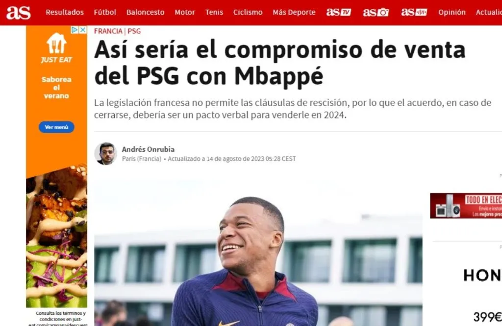 “La legislación francesa no permite las cláusulas de rescisión, por lo que el acuerdo, en caso de cerrarse, debería ser un pacto verbal para venderle en 2024”, indica Diario AS sobre un nuevo giro a la trama del siglo XXI. Real Madrid no se manifiesta de momento, PSG festeja y Kylian Mbappé ya hace parte de las prácticas de un Luis Enrique que cuenta con su presencia para el duelo ante Toulouse del sábado 19 de agosto.
