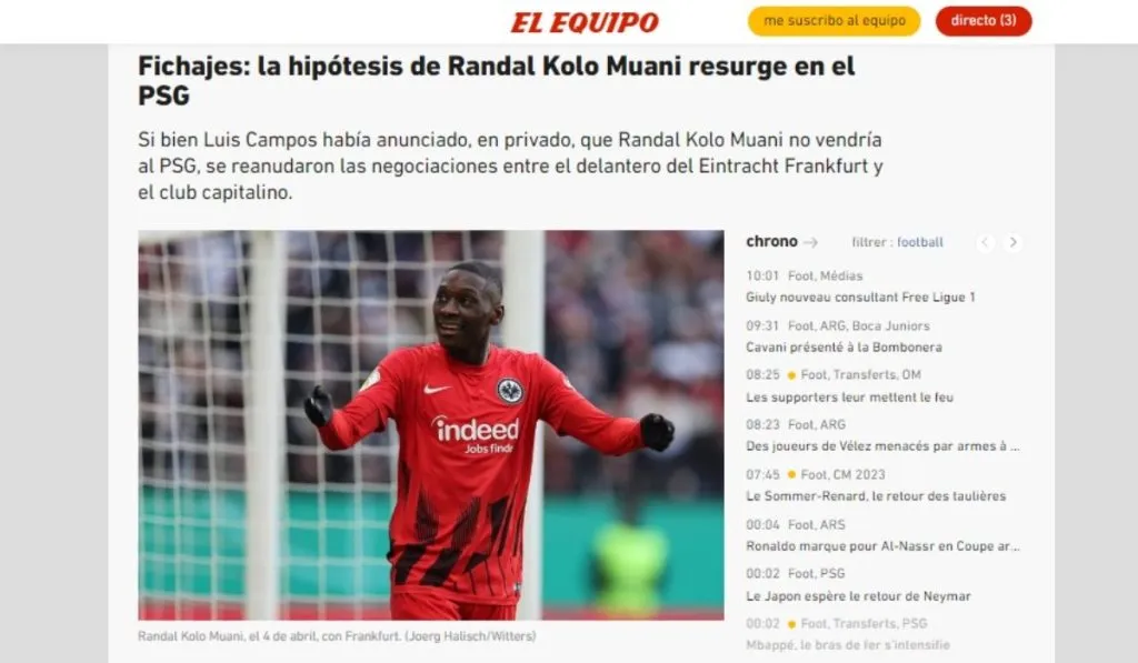 Por dicha cifra nos referimos a las peticiones que Eintracht Frankfurt ya ha hecho alrededor de Randall Kolo Muani. El internacional francés de 24 años, quien sonase para Bayern Múnich jornadas atrás, vuelve a escena en un PSG que ha comenzado tratativas pensando en su incorporaciones. Hace solo unas semanas el director deportivo Luis Campos le descartaba. En Alemania hablan de conocimiento del interés.