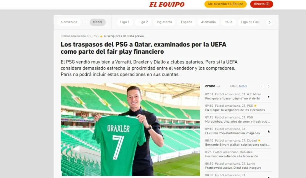 ¿Cuál es el problema? Para UEFA, indican desde L’Equipe, se estima que hay una ‘gran cercanía’ entre el club comprador PSG y el vendedor, por lo que podrían congelar dichas cantidades y que estos no le computen al club en el Fair Play Financiero. Qatar (estado) no olvidemos, es dueño del club francés, de la Liga donde llegaron Verratti, Draxler o Diallo y por supuesto de los equipos a los cuales desembarcaron.