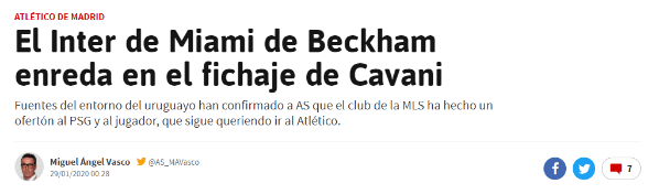 Según la información del diario AS, de España, la institución que comanda David Beckham está dispuesta a desembolsar una buena cantidad de dinero por el atacante uruguayo, que ya dio por concretada su salida de Paris Saint Germain.
