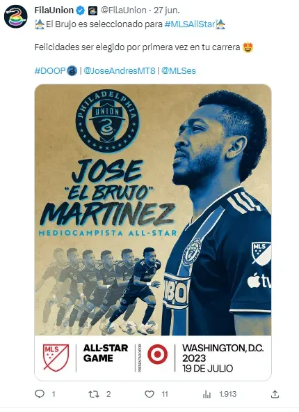 Ahora, ha llegado el momento de ver a José ‘El Brujo’ Martínez conformando el plantel en la nueva edición. El jugador de Philadelphia Union entró en el listado del entrenador, Wayne Rooney para efrentar a Arsenal.