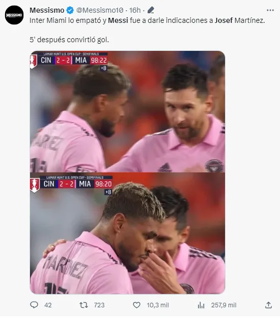 Inter Miami vive un momento impresionante y, a solo unos días de su consagración en la Leagues Cup, consiguen el pase a la final de la US Open Cup. Josef Martínez anotó un gol clave en el encuentro ante Cincinnati y Lionel Messi fue visto dándole instrucciones solo unos minutos antes.