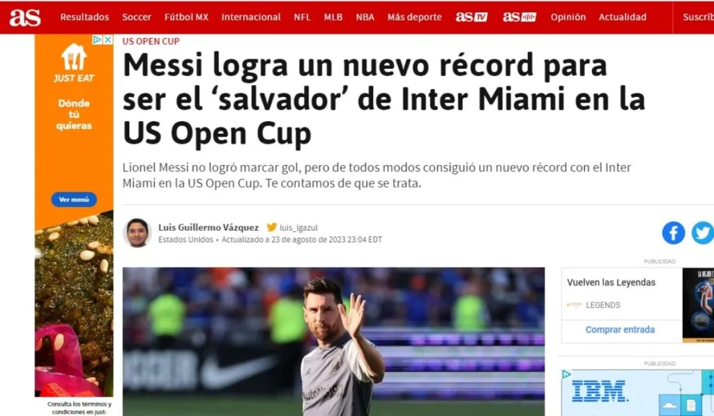 No hubo goles si, más si dos asistencias que valen una final para el equipo de David Beckham. Diario AS desvela que el centro de Lionel Andrés a Leonardo Campana para igualar todo en tiempo regular pasará a la historia: “La asistencia de Messi fue a los 96 minutos con 51 segundos, siendo de esta manera la más tardía en tiempo reglamentario por lo menos en la última década”.