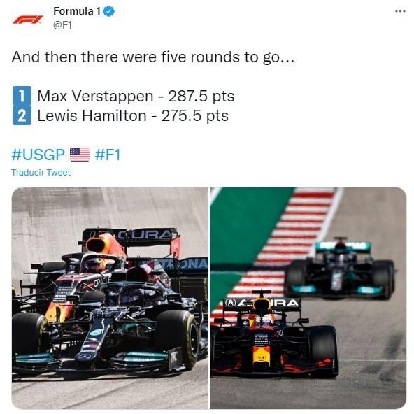 Después de que se desarrollara el Gran Premio de Estados Unidos, finalmente el joven neerlandés la ganó la pulseada nuevamente al siete veces campeón del mundo, quien además es el actual penta en fila. A Lewis no le alcanzó con marcar el mejor tiempo de vuelta y empieza a alejarse lentamente de la posibilidad de ser el máximo ganador de la historia del certamen.