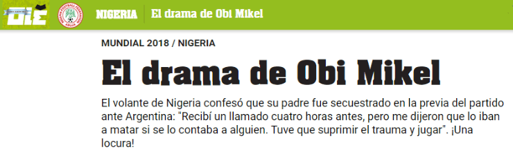 Saltando a los momentos previos al cotejo con La Albiceleste, Obi explicó:“Estaba emocionalmente angustiado, confundido, y tuve que tomar una decisión sobre si estaba mentalmente listo para jugar.No sabía qué hacer pero, al final, supe que no podía dejar a 180 millones de nigerianos”. “Tuve que cerrarlo de mi cabeza, suprimir el trauma e ir a representar a mi país.Jugué mientras mi padre estaba en manos de ladrones”, cerró.
