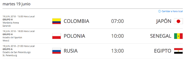 La primera polémica del Mundial surgió luego de conocerse en el sitio oficial del ente rector varios cambios de horario, incluido el partido de Colombia contra Japón que pasó de estar programado a las 10:00 am hora colombiana a las 7:00 am.