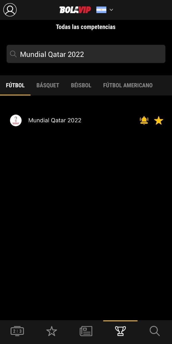 1. Ingresa a la sección de competencia y busca el Mundial Qatar 2022.