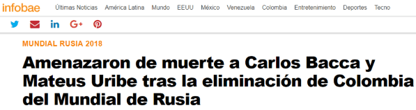 Según informó la agencia ANSA, los jugadores Carlos Bacca y Matheus Uribe fueron amenazados de muerte por las redes sociales.