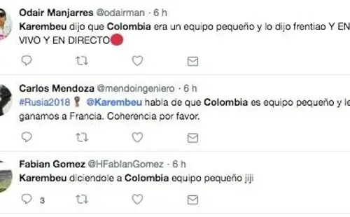 Christian Karembeumanifestó que espera que algunas “Selecciones pequeñas”puedan ser la gran sorpresa para este Mundial y mencionó a Colombia y a Perú. “Por lo menos, no hay fijo un favorito, ahora el fútbol es más abierto y ojalá que un equipo pequeño pueda dar la sorpresa, como Perú o Colombia”, fueron las palabras exactas del exjugador.