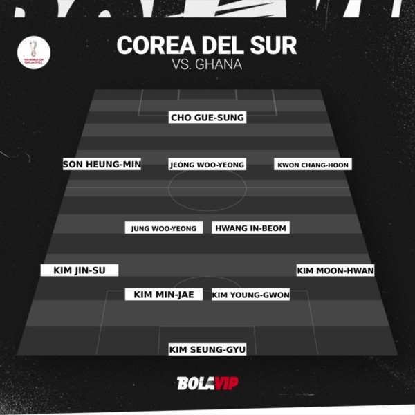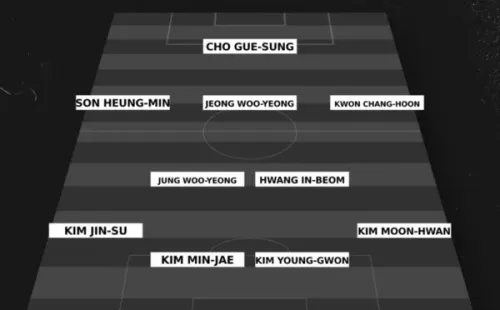 Corea del Sur formará con Kim Seung-Gyu; Kim Moon-Hwan, Kim Young-Gwon, Kim Min-Jae,Kim Jinsu; Hwang In-Beom, Jeong Woo-Yeong; Kwong Chang-Hoon,Jung Woo-Young; Son Heung Min; Cho Gue-Sung.