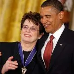 - WASHINGTON – AUGUST 12: U.S. President Barack Obama (R) embraces tennis champion Billie Jean King after presenting her with the Medal of Freedom during a ceremony in the East Room of the White House August 12, 2009 in Washington, DC. Obama presented the medal, the highest civilian honor in the United States, to 16 recipients during the ceremony. (Photo by Chip Somodevilla/Getty Images)
