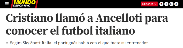 Según publicó hoy Mundo Deportivo, el delantero Merengue llamó a Carlo Ancelotti, su exentrenadoren el Madrid.