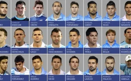 La lista que presentó Alejandro Sabella para el Mundial de Brasil 2014: 1- Sergio Romero, 2- Ezequiel Garay, 3- Hugo Campagnaro, 4- Pablo Zabaleta, 5- Fernando Gago, 6- Lucas Biglia, 7- Ángel Di María, 8- Enzo Pérez, 9- Gonzalo Higuaín, 10- Lionel Messi, 11- Maximiliano Rodríguez, 12- Agustín Orion, 13- Augusto Fernández, 14- Javier Mascherano, 15- Martín Demichelis, 16- Marcos Rojo, 17- Federico Fernández, 18- Rodrigo Palacio, 19- Ricardo Álvarez,20- Sergio Agüero, 21- Mariano Andújar, 22- Ezequiel Lavezzi y 23- José Basanta.