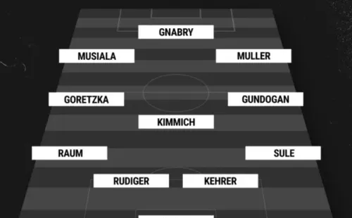 Manuel Neuer; Niklas Süle, Tilo Kehrer, Antonio Rüdiger, David Raum; Joshua Kimmich, Ilkay Gündogan, Leon Goretzka; Thomas Müller, Jamal Musiala y Serge Gnabrysarán los once titulares de Alemania para este segundo encuentro.