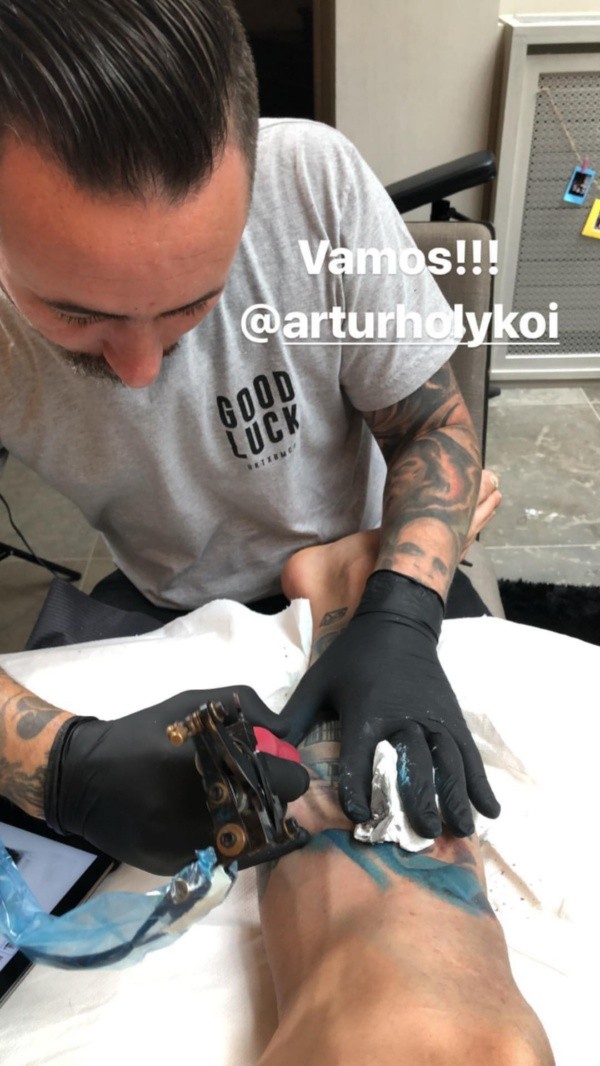 Di María recibióa Artur, un tatuador rosarino que vive en España y que fue hasta París para tatuar al jugador de la Selección Argentina. De hecho, Artur presenció el partido del PSG en el Parque de los Príncipes.
