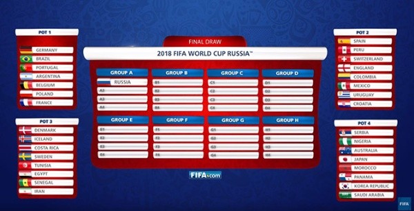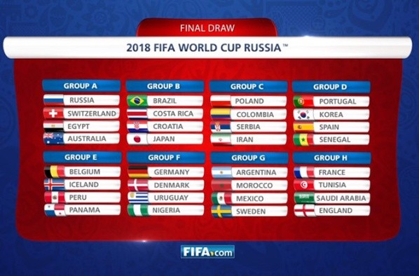 Tras la elección de los cabeza de serie, se procederá a ubicar a los ocho del copón 2 (España, Perú, Suiza, Inglaterra, Colombia, México, Uruguay y Croacia), después a los del copón 3 (Dinamarca, Islandia, Costa Rica, Suecia, Túnez, Egipto, Senegal e Irán) y finalmente los del copón 4 (Serbia, Nigeria, Australia, Japón, Marruecos, Panamá, Corea del Norte y Arabia Saudita) pero con algunas particularidades.
