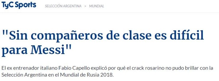 Según detalló TyC Sports,Capello explicó que “la cuestión es que el nivel de partidos nacionales es más alto que el de los clubes”. “En el equipo nacional, Messi no tiene compañeros de equipo en el club y tanto a nivel psicológico como físico, los oponentes aumentan su competitividad”, agregó.