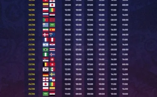 Tenemos dos fixture para que puedas imprimir. El que más nos gusta es este, donde puedes encontrar los horarios por país: