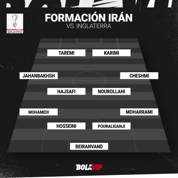 Los iraníes responderán conBeiranvand; Moharrami, Pouraliganji, Hosseini, Mohammedi; Nourollahi, Cheshmi, Hajsafi; Jahanbakhsh, Taremi, Karimi