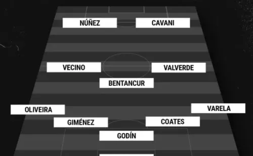La Celeste saldría con: Sergio Rochet; Guillermo Varela, Sebastián Coates, Diego Godín, José María Giménez, Mathías Olivera; Federico Valverde, Rodrigo Bentancur, Matías Vecino; Darwin Núñez y Edinson Cavani.
