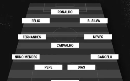 Los lusos arrancarían con: Diogo Costa; João Cancelo, Rúben Dias, Pepe, Raphael Guerreiro; Rúben Neves, William Carvalho, Bruno Fernandes; Bernardo Silva, Cristiano Ronaldo y João Félix.