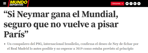 “Si Neymar gana el Mundial, seguro que no vuelve a pisar París”, habría dicho el futbolista de conjunto de Francia.