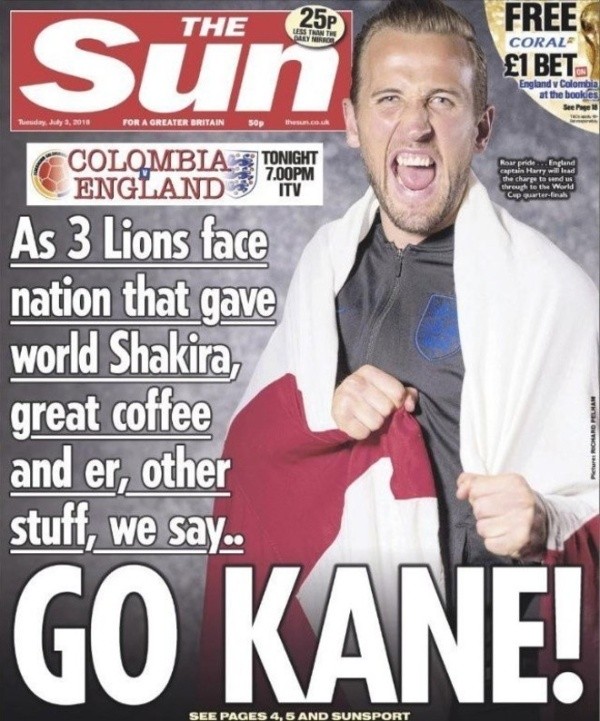 En la previa del duelo que jugaráInglaterra por los octavos de final el reconocido diario inglés The Sun fue más allá con la tapa de su edición diaria.