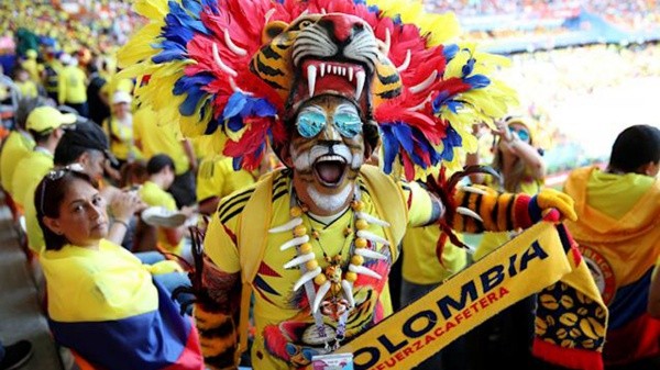 Alegría, pasión y mucho color en esta fan colombiana alentando a su equipo (Getty Images)