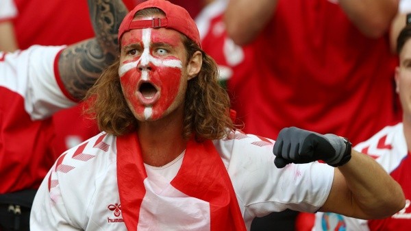 El fanático danés dejando todo para alentar a su equipo en una Copa del Mundo (Getty Images)