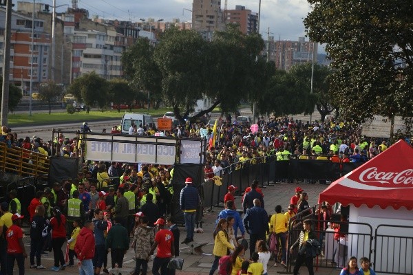 “Gracias a todos los bogotanos que han llegado al Campín. Tenemos lleno total en las graderías y para garantizar la seguridad de los asistentes, damos cierre al acceso en este momento”, es el mensaje de la cuenta oficial de Twitter del Estadio colombiano. Los hinchas no solamente colmaron las instalaciones, sino también sus alrededores.