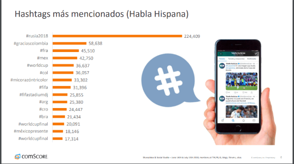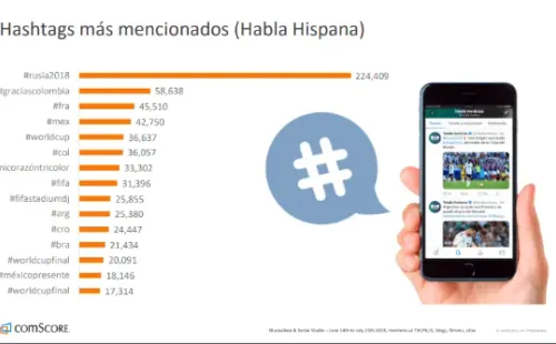 La empresa ComScore analizó los hastags más usados a lo largo del Mundial de Rusia 2018 por las personas de habla hispana.