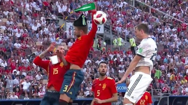 El defensor del Barcelona levantó la mano hasta cualquier lado y le dio el empate que Rusia necesitaba para acomodarse en el encuentro.