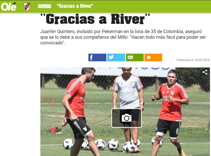 Con el paso de los encuentros, el hincha de River se fue encariñando con un Juan Fernando Quintero que cada vez que entraba daba pinceladas de un fútbol muy vistoso y rico en cuanto a calidad. Hoy por hoy, de a poco consiguiendo el lugar por el que peleó en el último tiempo, el colombiano se encuentra a gusto en el Millonario y hasta se animó a reconocer que gran parte de su convocatoria a la Selección de Colombia se debe a sus compañeros: “Hacen todo más fácil para poder ser convocado”.