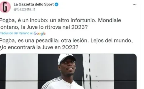 “En el momento en que el centrocampista francés empezaba a ver la luz al final del túnel, he aquí otra parada, otro aplazamiento, que, salvo milagros, le obligará a despedir 2022 sin haber jugado con la camiseta de la selección”, informa la Gazzetta sobre un Paul Pogba que salvo un giro de 180 grados, será baja confirmada en la campeona del Mundo por Qatar.