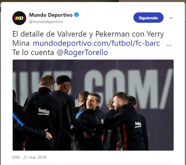 Por otra parte, el entrenador del Barcelona Ernesto Valverde también dialogó con Yerry Mina para pedirle que no baje los brazos y que se siga entrenando en el equipo que tiene como capitán a Lionel Messi.