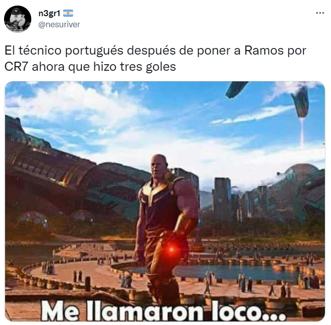 Aunque CR7 ingresó al campo para lo últimos 20 minutos, pero no logró sumarse a la fiesta goleadora. En las redes sociales tomaron de punto al Bicho, acusando a Ramos de jubilarlo y al exdelantero de Manchester United de ya no tener lugar en la plantilla.