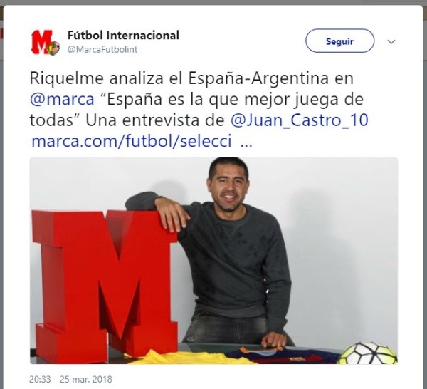 Riquelme cree que España llega mejor al encuentro “con un estilo marcado” y que Argentina “está aún buscando una manera de jugar”.